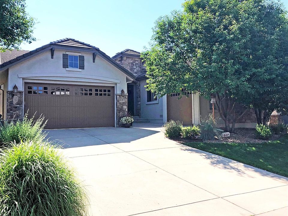 Beautiful ranch offering low maintenance lifestyle located in the gated community Heritage Hills in Lone Tree. This warm and inviting home boasts an open, voluminous floor plan with exceptional architecture and design. Soaring ceilings, pretty arches, gleaming hardwood floors, plantation shutters, floating stone fireplace, huge great room, gourmet kitchen and breakfast room and 4 bedrooms each ensuite are some of the special features that make this home standout. Additional features: Butler's pantry, covered patio, master with two closets designed by California Closets, main floor study with French doors, concrete tile roof, large storage room and professionally & beautifully landscaped. Lots of amenities nearby include pool and tennis within walking distance. There's also a private path that takes you directly over to the light rail station. Close by you have shopping, entertainment, restaurants, medical assistance, The Bluffs Regional Park Trail, Lone Tree Rec Center and more!