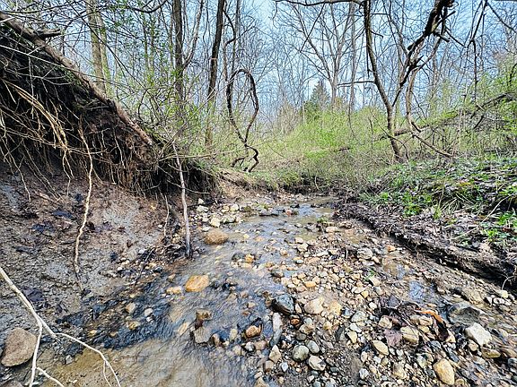 Escape city life to a private retreat with this rare wooded lot, nestled away from the main roads and offering views of the serene Big Blue River. This tract has ultimate seclusion with a gravel driveway that leads approximately 450 yards back, a quarter mile off the main road. The driveway opens into approximately 3.5 acres of manicured grass, perfect for picnics and outdoor activities. The drive continues to a 60 x 30 pole barn that boasts concrete floors, ample lighting and outlets, a wood burning stove, and a bathroom that simply needs to be connected to the existing septic. Inside the cozy 400 Sq Ft. cabin, you'll find a fully equipped kitchen, a loft, and a full bathroom. Property being sold as is. Shown by appointment only.