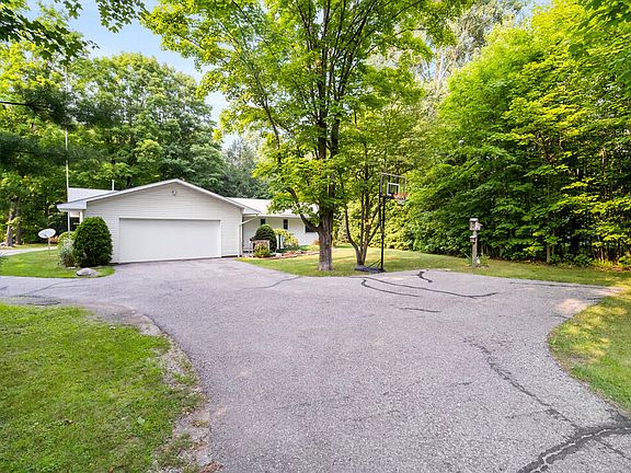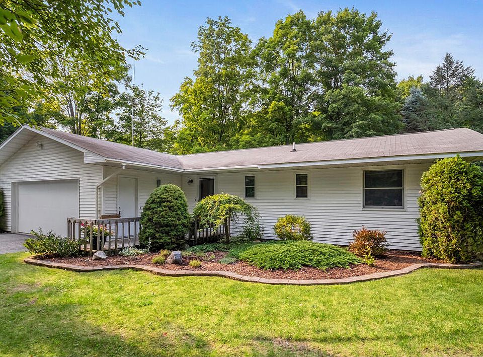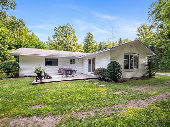 This well maintained 3 bedroom home just west of Indian River on 1.6 acres wooded acres is both a great house and a great location. The large great room extends to the dining area and kitchen, creating an open living space. The large rear deck is a wonderful option to enjoy a meal or a morning coffee. The ranch style, frame construction allows for living all on one level while the master suite and 2 guest bedrooms provide space for all. The 2-car attached garage, paved driveway, central air, and beautiful landscaping are just a few of the features. The additional 16' x 30' garage can be utilized for storage or a workshop.