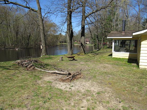 Your summer cottage awaits here in Evart! Enjoy fantastic views and waterfront tranquility in this charming home on 1 acre that is set back from the road. You will love the open floor plan and the fact there is one bedroom & half bath on one end of the house and the other 2 bedrooms/full bath on the other end. Enjoy built in's, large cedar closets and more. The Well is only 2 years old! Extra large 2 stall detached garage and a storage shed. Must see inside, there is storage space where the on e stall garage used to be that can be converted to living space, the possibilities are endless. Outstanding neighbors.