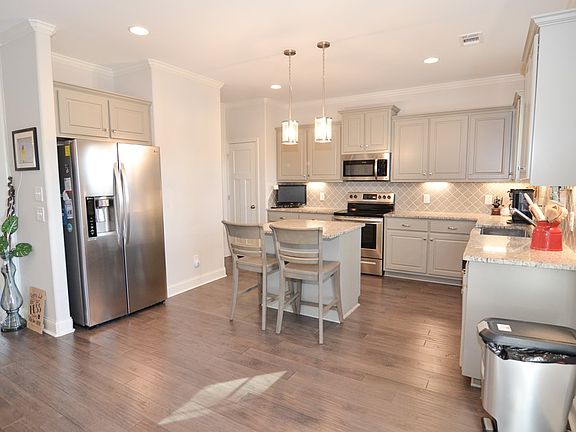Beautiful, nearly new home in desirable Midland Downs! The open floor plan features a kitchen with large island, subway tile backsplash, under cabinet lighting, granite counters & stainless appliances. Spacious living room with electric fireplace, formal dining room with coffered ceiling, and a convenient half bath for guest use. Wide plank hardwood flooring throughout the main level! Oversized master suite with huge walk-in closet. Covered patio with wood burning fireplace. 2 car garage.