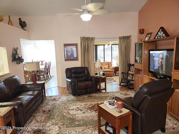 Spring Hill Move In Ready Home 2 Bedrooms 2 Full Bathrooms And A Screened 2 Car Garage- Enter The Home To The Tiled Foyer- Great Room Vaulted Ceilings- Tiled Eat In Kitchen With A Dining Nook, Newer Refrigerator, Garbage Disposal, Dual Sinks And 2 Pantries And A Formal Dining Room- The Master Bedroom Has A Walk In Closet, Tiled Shower Dual Sinks And A Linen Closet- Extras Include Transom Window, Ceiling Fans, Interior Paneled Doors, Inside Laundry Room, Plexiglas Lanai With Heat And Air, Roof 2021, Newer Lighting For The Interior And Exterior Of The Home, New Ceiling Fan In The Great Room, Newer Commode In The Master Bedroom, Newer Fencing With 2 Gates, Open Floor Plan, Call Today For A Showing.