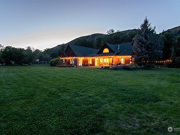 Escape the hustle and bustle of daily life and find peace in this beautiful home that is nestled in the Manastash! This quality home is surrounded by mature landscaping, basalt cliffs and a deer proof garden. The home boasts 3 bedrooms, 2 bathrooms, bonus room, vaulted ceilings, open floor plan, Main floor primary bedroom, hardwood floors in the kitchen, dining room, breakfast area and entry. The floor to ceiling river rock fireplace is perfect for cozy evenings. Access the property through a gated lane that adds the extra touch of exclusivity and security. Sit on your patio and admire your 25.88 acres while listening to the sound of your water feature. There is also nearly 500 feet of creek frontage with a fire pit, and swimming hole.