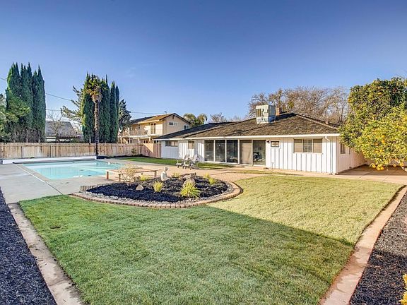 Beautiful custom home on classic Elk Grove Street! Prepare to fall in love with the floor to ceiling windows in the spacious great room! Mirrored on the front of the house, the windows provide natural light throughout. The property is freshly painted inside, new laminate flooring, new landscaping, and has huge rooms! Extra room off the family room could be 4th bedroom, or perfect for home office or gym! The back yard with huge pool is just begging for a party! Located on a cul-de-sac, and single story, within a mile of Elk Grove Regional Park, several schools, and many shopping options.