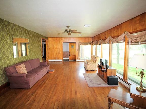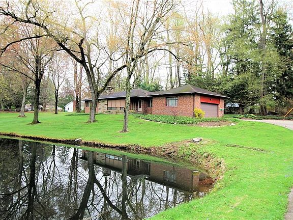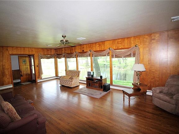 Do you want privacy? Welcome to this charming ranch with winding driveway that sits back from the road and has an astonishing pond to enjoy on over an acre lot. This two bedroom, one and half bath home offers a large bright and airy great room with magnificent large windows to view the sensational pond and also offers wonderful hardwood floors, built in bookshelf and fireplace. The kitchen has eat in area, abundant of cabinets and counter space and offers an extended stainless steel food prep work area and pantry. The dining room is off of the kitchen with hardwood floors and plenty of windows to let in the sunshine. There are two large bedrooms with large closet space, hardwood floors and nice size windows. The huge finished lower level can offer so much more space for an additional family room, recreation room, office space etc there is also an extra shower. There is a two car attached garage with water available. The back porch is a nice area for grilling and there is a shed as well. Some updates include central A/C 2018, new 3D roof 2010.