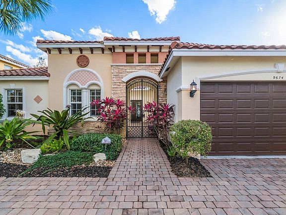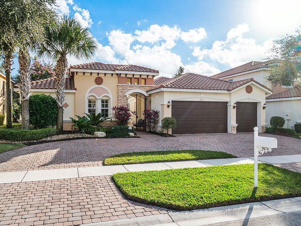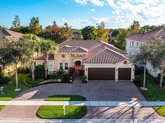 Gorgeous one-story estate home shows like a model. This rarely available open concept floor plan Viani model offers 4 bedrooms plus Den, 3 bathrooms and 3 car garage.Wrought iron gate courtyard entrance leading you to the double glass door entry to be greeted by volume ceilings and spacious living areas with abundant natural light.A dream gourmet kitchen, with oversized serving island, quartz countertops with full backsplash, and plentiful wood cabinetry and stainless-steel appliances.The family room is open to the kitchen and this area is ideal for the hub of all family activity. You'll love the breakfast area with plenty of windows overlooking the private backyard. Gorgeous one-story estate home shows like a model. This rarely available open concept floor plan Viani model offers 4 bedrooms plus Den, 3 bathrooms and 3 car garage. Move-in ready, all with neutral colors. Wrought iron gate courtyard entrance leading you to the double glass door entry to be greeted by volume ceilings and spacious living areas with abundant natural light. A dream gourmet kitchen, with oversized serving island, quartz countertops with full backsplash, and plentiful wood cabinetry and stainless-steel appliances. The family room is open to the kitchen and this area is ideal for the hub of all family activity. You'll love the breakfast area with plenty of windows overlooking the private backyard. The formal living room and dining room are perfect for your holiday dinners. They are bright and airy with views of the garden and the courtyard. The huge master bedroom suite has its own wing and features a coffered ceiling, sitting area with dual built- in walking closets. The luxurious master bath features wood cabinetry with saturnia marble vanities, a roman tub, frameless shower enclosure and private commode. The two secondary bedrooms plus a den/office with a full bathroom are on a separate wing and the fourth bedroom is the in-law suite. It has its own exterior entrance to the courtyard with a separate sitting area and a full bathroom. Other significant improvements are impact glass windows, doors and plantation shutters throughout the home, recess lighting, new light fixtures and ceiling fans, new quartz countertop and backsplash, new flooring in all bedrooms, interior freshly painted, both HVAC replaced in 2020, circular driveway, covered patio, fenced yard, no rear neighbors on the back and has room for a private pool. Isola Bella Estates offers: 24 hours manned gate, club house, multipurpose room with catering kitchen, fully equipped remodeled fitness center, two lighted tennis courts, basketball court, resort style pool with spa, kiddie water spray station, tot lot, sidewalk, street lighting throughout the community. In addition, the maintenance includes the lawn care, sprinklers system and common area. This beautiful home is in an excellent school district, just minutes to the turnpike, Delray Beach, Wellington, Boynton Beach, restaurants, shopping centers, beaches, 3 international airports and much more.