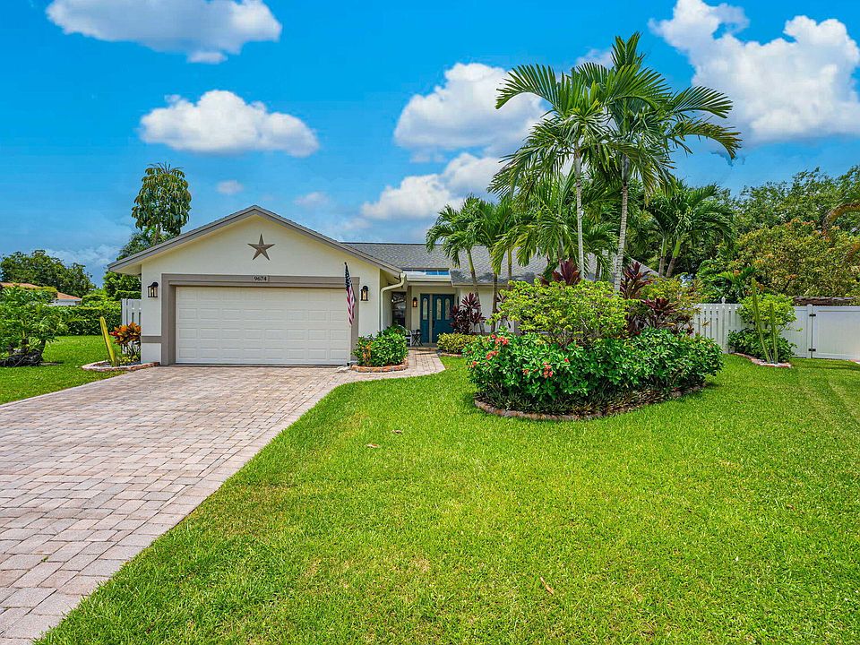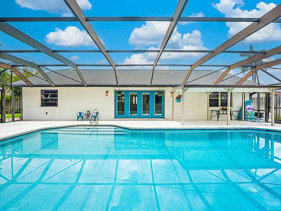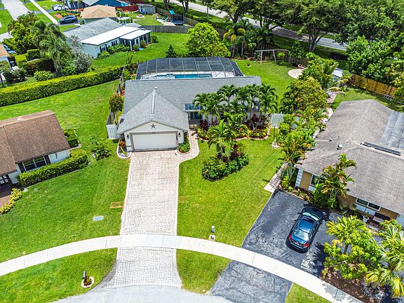 Welcome home... Your 4/2 Tropical Paradise awaits with 2-car garage and spacious driveway, oversized fenced backyard, big pool 18x34 heated pool with spa, covered screened patio and lush landscaping with mango, avocado, jackfruit and banana trees. Quiet Cul-De-Sac. Let your kids enjoy the swing set while you relax by the fire pit in this huge backyard. Freshly painted inside and outside. Remodeled deck with covered seating area. New Top of line Kitchen Aid Stainless Steel appliances. New High-End Washer and Dryer. Porcelain tile throughout the house. Never run out of hot water with the tankless water heater which is a plus for your jacuzzi in the guest bathroom. Newly remodeled community courts, play area, heated pool and clubhouse. Southwind Lakes Golf Course nearby.