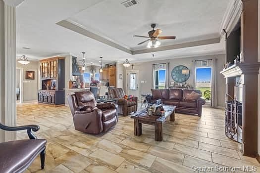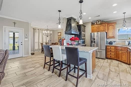 Amenities Galore!!! Home is in mint condition. Nothing to do but move in! 9&10 ft ceilings, all hard surface flooring (No carpet), custom kitchen has granite, bar stool seating, gas stove, refrigerator to remain, crown molding, open floor plan, master bath has walk in shower, 4th bedroom has unsuite bath that has handicap accessible oversized shower. Home office, air conditioned garage that has brick floors. Outdoor kitchen has gas stove, oversized commercial sink, shop is air conditioned, epoxy coated floors for easy clean up, and is air conditioned. Home has oversized back porch, landscaped, whole house generator. Oversize driveway, and electric gate. Call for your showing today.