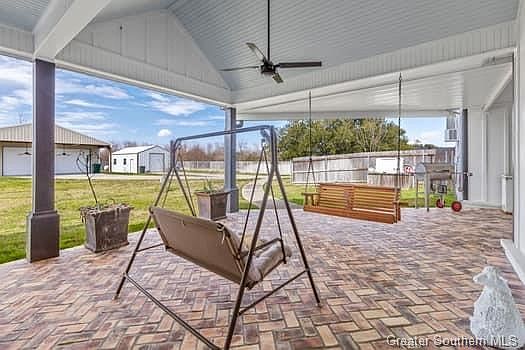 - Patio & porch: Brick, Covered, Concrete, Patio