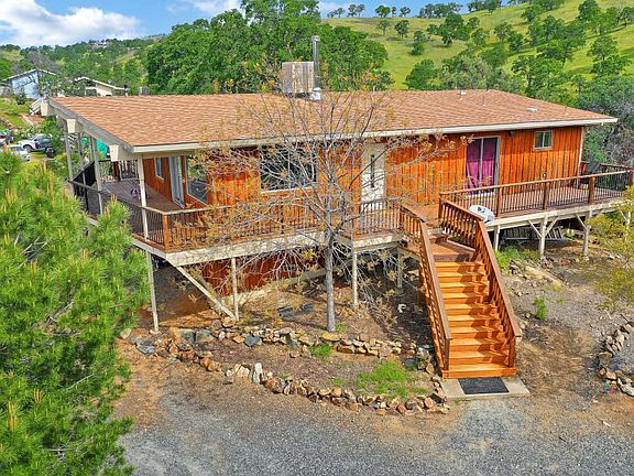 Inviting Canyon-View 3bd/2ba Home with a Deck. Welcoming, beautifully-kept 3 beds with possible 4th, 2 bath chalet with an enticing canyon view & rolling hills. Enjoy the graciousness of the large rooms & the charming tiled entry. Natural daylighting floods the spacious living room through double-paned windows and showcase the grandeur of high beamed ceilings. Home offers central heating and air. Delight in the convenience of the updated, custom kitchen with breakfast bar, pantry, distinctive tile countertops, and stainless steel appliances. For a real get-away, retreat to a private master suite with mesmerizing sunset views. Relax and unwind in the soaker tub that offers an added tranquil incentive! There is a treasure just outside your doorway; gather friends to watch the evening sky or just enjoy solitude on the large-view wrap around deck. Take advantage of the seasonal creek, drought-resistant & natural landscape to incorporate into the ample garden space this property features