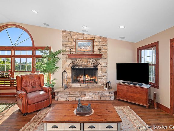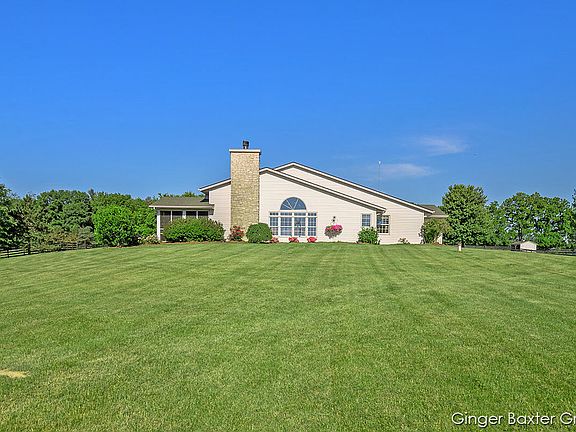Located on a peaceful, picturesque 29 acres in Alto, Michigan, this property is perfect for the equestrian lover looking to escape the hustle and bustle of everyday life. In the farmhouse, you'll find an eat-in kitchen complete with classic white cabinets, granite countertops, a tile backsplash, a center island, and stainless steel appliances. Large windows in the living area provide lots of natural light and beautiful views of 5 pastures. The living room also has a classic stone fireplace and french doors that lead to a gorgeous pine-walled sunroom. Down the hall is the spacious primary bedroom, which features a full bath, double closets, and doors leading to the deck. Find luxury in the attached bathroom that includes a soaking tub, skylight, and tile shower. The home also has a second bedroom, second full bath, large office area, and laundry room. The home is wired for surround sound throughout, and beautiful views of the property, surrounded by walnut trees, can be found in any room.