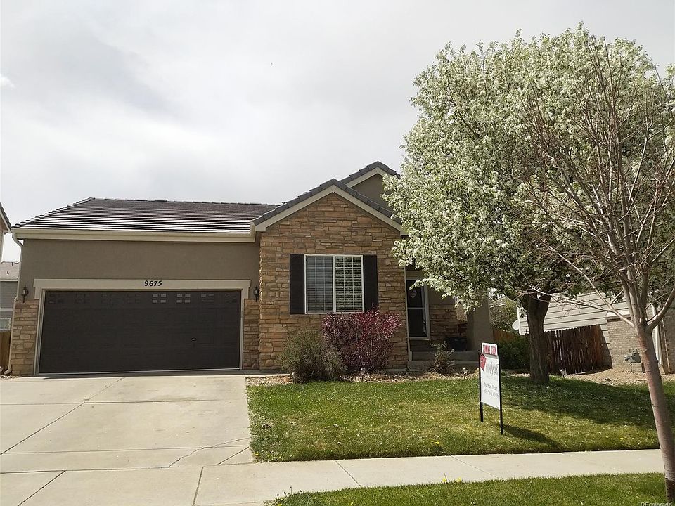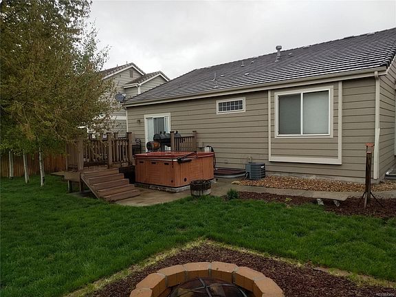 Walk in and you are greeted by the huge family room with soaring vaulted ceiling and a gas fireplace. Off of the family room is a large office with built-in shelving. The kitchen has abundant space for a table and other kitchen/dining furniture, it features dark cabinets with 36" uppers, granite counters, gas stove, solid surface undermount sink and a pantry. The master bedroom has a walk-in closet, master bath with soaking tub, and private commode. The main floor also has another bedroom, laundry room and a full bath. The partially finished basement includes a large family or game room with a wet bar and wine cooler, a 3/4 bath, and another bedroom with a walk-in closet. This might be the best back yard in Fronterra Village with a recently serviced hot tub, large trex deck, fire pit, garden area, privacy trees and beautifully landscaped yard. Additional features include 1 year old exterior paint, 3 year old furnace 4 year old water heater, water softener, radon mitigation system.