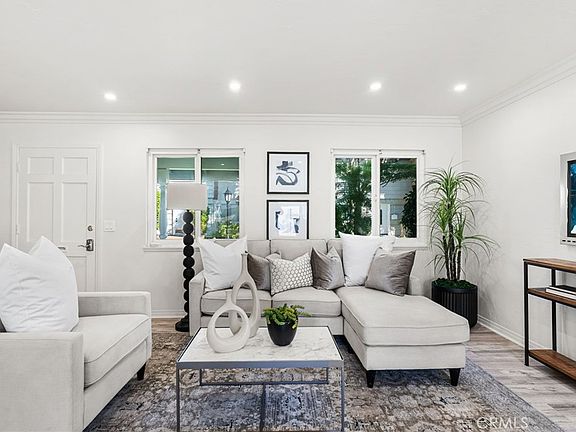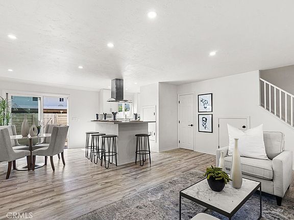 Welcome to this beautifully remodeled two-story home located in the popular Village Town Homes community of South Huntington Beach. Upon entering, you'll find a bright, airy living space featuring new flooring and fresh paint, creating a warm and inviting atmosphere. The remodeled kitchen boasts an island with bar seating, a new gas stove, a new dishwasher, and quartz countertops.