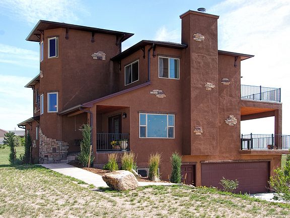Climb your own ivory tower to view classic pictures lit by sconces,dream/meditate & watch the sunset.This stucco/stone Italianate home also boasts a Juliet balcony,3 patios & 2 large Master Suites w/private baths,Living Room opens to the Spacious kitchen w/granite counters,kitchen island & pantry.Upper level master has sitting area that could be used as a separate bedroom,LARGE walk-in closets & expansive private master bath.New Landscaping!Basement finish in progress for additional guest suite,sitting room & 3/4 bath! Main level master suite and upper level master suite! Perfect mother-in-law suite w/ sitting room. So many possibilities for this unique home just waiting for you! In southeast Black Forest area with easy commute! 4 car tandem garage! 360 degree views!