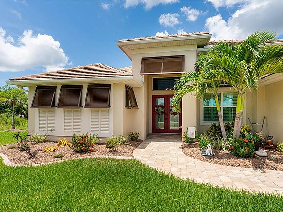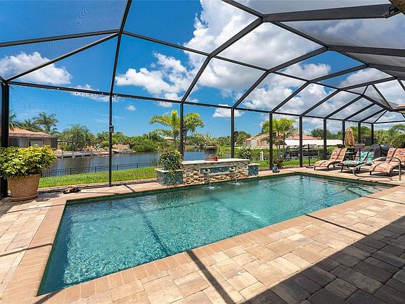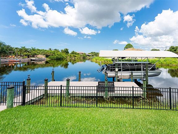 Built in 2017, you have the rare opportunity to own this spectacular waterfront home with infinite upgrades, boating access to the Gulf of Mexico straight from your covered boat lift, and no wait or punch-list! Resort style living at its best, this luxurious home is perfectly located on almost a half-acre tip lot where two canals connect, providing wide water views and almost 160 feet of waterfront frontage! The meticulous tropical landscaping, brick paver driveway and sidewalk, tile roof, coveted 3-car garage, and grand covered entrance are a quick preview of what lies ahead in this magnificent custom DM Dean home. Walk past your exquisite lead-glass paned double front doors, and your million-dollar water views are showcased just beyond the Great Room zero corner pocketing sliding glass doors, sparkling heated saltwater pool, and screened lanai. The quality shows with every detail - high and tray ceilings, decorator lighting, crown molding, tile flooring throughout, plantation shutters, and so much more. Both bathrooms offer gleaming granite counters and designer tile. The spacious gourmet kitchen is a chefs dream with granite counters, stainless appliances, wood soft-close cabinets, a beautiful tile backsplash, and a large island with a breakfast bar; the perfect place to convene for morning coffee. The split floor plan gives you privacy from guests who will never want to leave, and you will wake to amazing water views in your Master Bedroom. Have breakfast in the nook overlooking the pool and brick paver lanai while you plan your day. If work is on the agenda, slip into the office to make that phone call. Then take your boat out for a day on the water, head to a nearby beach, fish from your backyard composite dock, or just float in your pool, using the pool bath to keep your floors dry. In the evening, come home, grab a bottle of wine out of the wine fridge in the laundry room, crank up the grill, and take advantage of the elegant outdoor kitchen with fridge, sink, and storage. Then watch the sky catch on fire at sunset enjoying the sights and sounds only mother nature provides. The hurricane impact windows and accordion shutters on the lanai and fenced backyard are icing on the cake. Make this dream your reality and you will be the envy of everyone you know! Call Today!