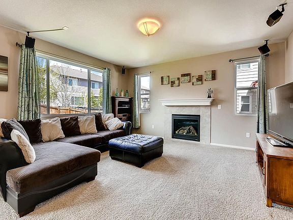 Beautiful 2 story Richmond home model with 4 bedrooms, 3 baths! The home features a flex room which could be formal living room or office/study, powder bath on the main, family room with gas fireplace, kitchen features microwave, cooktop stove, double ovens, dishwasher and fridge, granite countertops with undermount sink, island and pantry. Spacious master bedroom with adjoining 5 piece master bath with granite counters, large walk in closet with custom built organizers (featured in all bedrooms). Convenient upstairs laundry. Alarm system and surround sound system, speakers included. Great fenced yard with large stamped concrete patio, perfect for outdoor entertaining.The three car garage plenty of parking space and storage! Conveniently located near shopping, E-470, I-76 & the DIA.New rec center is slated to open this summer! Do not miss out on this opportunity! SHOWS LIKE NEW