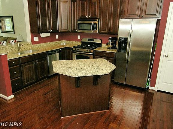 Brick TH backing to woods. Gleaming wood throughout 1st floor of this immaculate home. Gourmet kitchen w/ beautiful granite island, breakfast bar and countertops, upgraded cabs, SS appl, and built-in micro. Fam. room with gas FP leads to no-maintenance deck. Large, finished, walkout basement exits to a private patio/yard. Enormous master BR with sitting area, bath w/ soaking tub and sep shower.