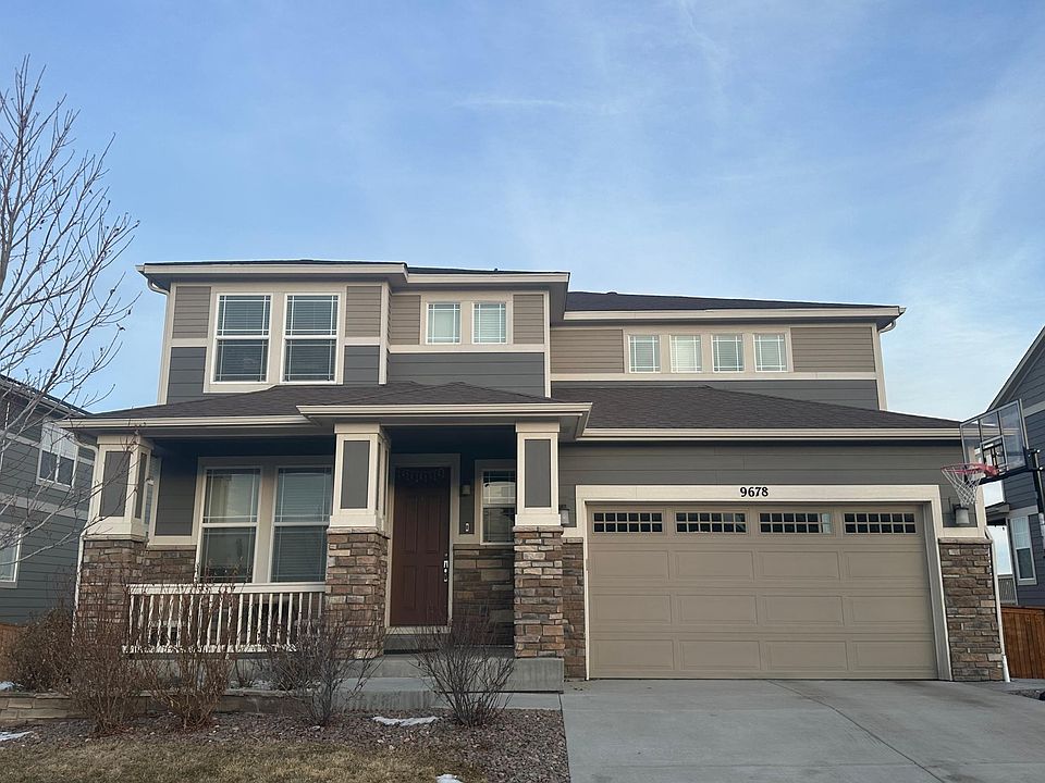 Beautiful energy efficient home available for rent in Stonegate community. Home features an enormous great room with large windows and a fireplace. The gourmet kitchen with stainless steel appliances also has an oversized island with a stunning granite counter tops that accents Maple cabinets. Main floor has study and pocket office. Hardwood floors on main floor and basement. Second floor has master suite with luxurious five piece master bath, 2 bed rooms with jack and jill bath, guest bedroom, full bath and loft. Finished WALK OUT basement with media room, wetbar, bed room and full bath. Basement bedroom can be used as bedroom/gym/office room. 3 car tandem garage. Stonegate is located near the Parker Rec Center, minutes from downtown Parker, and has easy access to E-470 and close to shopping and dining making it perfect for any lifestyle. Resident responsible for all utilities. Rental insurance required.