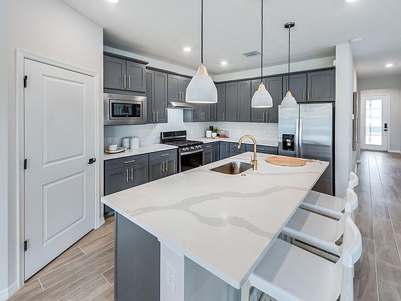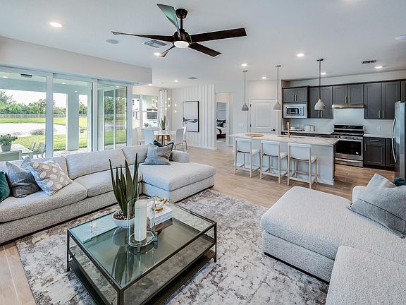 Have you ever dreamed of living in a Builder's show home? Well, here is your chance! Just bring your clothes and your toothbrush and move right into this beautifully decorated Mystique model home. Open concept and Split floorplan, this popular 3 bedroom plus den/2 bath with lake view is a winner. Open the pocketing zero corner sliders and bring the party outside to the oversized covered lanai. While you are only steps to the community's pool, you have room in your backyard to build your own. Home will be sold furnished. Cost of furnishings ($30K) not included in published price and must be paid directly to builder. Estimated move in for this home will be January - March.