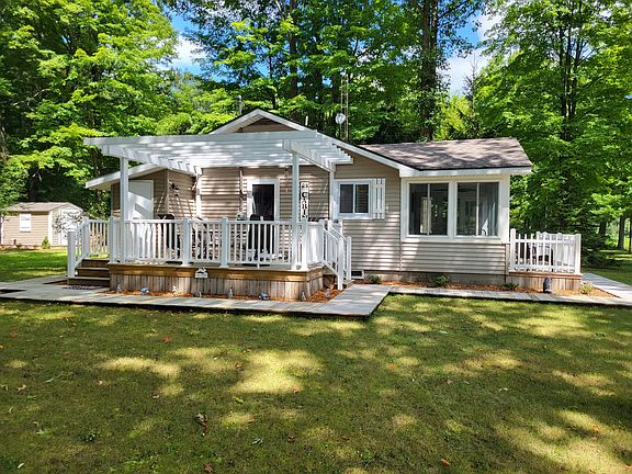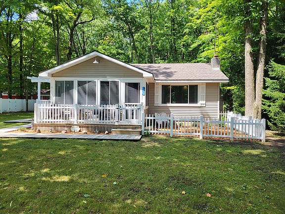 All new inside and out featuring 2 bedrooms, 1 bath, open kitchen / living area, a 4 season room, 2 decks and a 24 x 32 garage with 2 bedrooms with separate entrances. Storage shed, fire pit and vinyl privacy fence. Quality craftsmanship and decorated by the owners as their cottage.