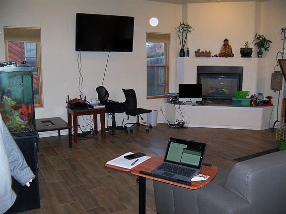 This 2001 constructed townhome has serene views of Ponderosa Pines from the rear deck off the kitchen and dining areas. Additional features include a large kitchen with ample storage along with pantry and large dining space. Spacious living area features recessed built-in shelves, gas fireplace, and large sunny windows. Skylight in upstairs hallway allows nice light to filter in; hallway also has built-in shelves; three spacious bedrooms and two more bathrooms finish the upstairs. Home has evaporative cooling and radiant heat throughout; An Oversized finished 2-Car Garage with loads of storage space; nice terraced area in front features over numerous spring bulbs that await bloom; and a flagtone side yard.