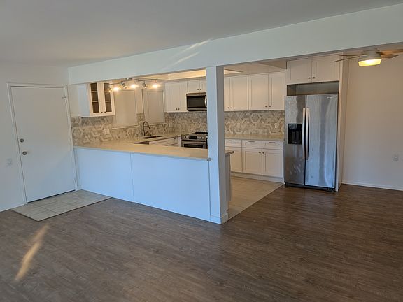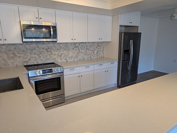 55+ Community Welcome to this beautifully remodeled condo, where modern elegance meets everyday comfort. The open-concept kitchen features crisp white cabinetry, stainless steel appliances, and warm brown-toned flooring. It offers abundant storage, including convenient drawers for easy access, as well as additional counter space with seating, perfect for casual dining or entertaining. The bright and airy living room is enhanced by large windows that fill the space with natural light. Expansive sliding glass doors and double-pane windows create a seamless connection to the outdoors. Step out onto the private balcony and enjoy serene views of mature, majestic trees. For added convenience, this unit offers no steps from the carport to the front door, providing easy and accessible entry. Additional highlights include a private laundry area with a stackable washer and dryer, and a Heat Pump AC unit in the living room for year-round comfort. No pets, with no exception. The tenant pays for electricity and for Laguna Woods membership, which is $170 on the first year and $110 thereafter.