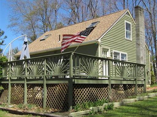 This beautiful, charming home is priced so low as it failed Title 5 septic system inspection & the repair shall become Buyer's responsibility. List price has been approved by sellers lender. Response to request of sale approval will be quick. That aside, such a lovely property! Very tastefully done. Open concept Kitch / LR. Ceramic tile & hdwd flr. 1st flr - LR/kitch, master bdrm, office, full bath. 2nd flr - 2 more bdrms w/ built-ins & skylights! Cool "man-town" in basement. Wood deck. Pretty setting.