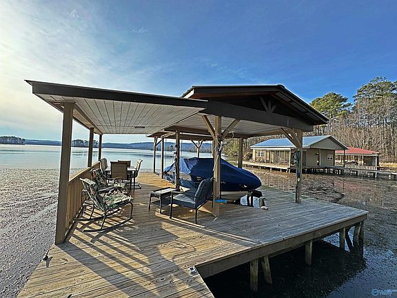Main Channel Waterfront Home on Lake Guntersville. Property Features: 3 Bedroom / 2 Baths / 1,100+/-sqft. 1 Slip Open Boat House with Lift. On-Land boat garage will trolley system. 115+/- ft of shoreline. Seawall. 5+/- FT water depth at normal pool. 26x10 boat slip.