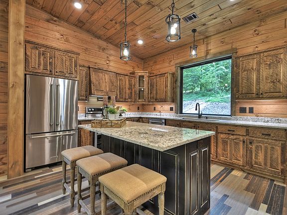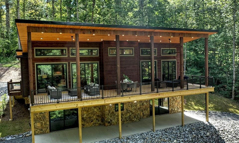 Luxury Waterfront Home | Custom-Built | Minutes to Downtown Blue Ridge ?? Stunning New Construction – Move-In Ready! Welcome to your dream luxury waterfront home near the Toccoa River, just 10 minutes from downtown Blue Ridge and 1.5 hours from Atlanta. This newly constructed, custom-built two-level home offers modern mountain living at its finest—nestled in a tranquil, private setting surrounded by lakes, rivers, and mountains. The fully finished terrace level with wet bar and private entrance opens to a private deck -- ideal for home office, in-law suite, studio, or media room Perfect for lounging or entertaining year-round, an expansive porch, warmed by a custom gas fireplace and pre-wired for future hot tub, overlooks your own first-class trout stream. Imagine relaxing by the warm and inviting stacked stone fireplaces in the living room and ground-level living area. Master suite on main level with outdoor access and spa-like ensuite bathroom featuring a soaking tub, custom tile shower, and double vanities. Chef's kitchen with stainless appliances, granite counters and island, custom cabinets, and modern lighting. Durable metal roof, energy-efficient closed-foam insulation. Easy access to private trout stream, waterside fire pit, and dock. Golf cart included, still under warranty. Turnkey Airbnb Opportunity – Vacation rental–friendly with premium location and features sought after by guests.