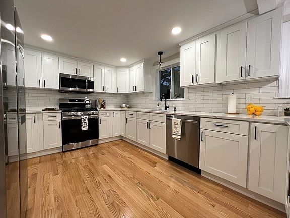 Price Improvement! This beautiful renovated home in Reading is ready for its next owner! The 4 bedrooms and 3 bathrooms provide room for the whole family, spread along 3 levels of well thought living. The spacious new kitchen has lots of shaker-style sleek white cabinets and stylish quartz countertops, complete with a handy peninsula and stainless-steel appliances. Next, find the formal dining room and inviting living room, a first-floor bedroom and a FULL tiled bathroom. Second floor has two spacious bedrooms and another beautiful tiled full bathroom. The walk-out lower level has a wet bar, laundry room, a living area and a windowed bedroom, perfectly set-up for a possible in-law living situation. The beautiful and very large back yard has multiple patio areas and a huge, level patch of grass for leisure and play. New central heat and A/C, Brand new electric and plumbing and will help you enjoy living here with peace of mind for many years to come!