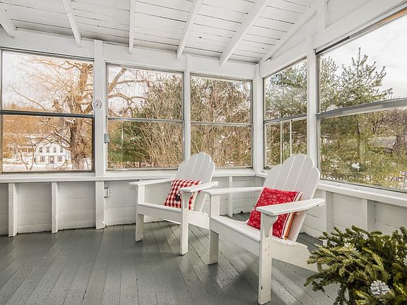 Pretty 1825 Colonial in the heart of Salisbury Village just minutes to Lake Dunmore, Branbury State Park and Middlebury. Enjoy the late afternoon sun on the three season porch while listening to the sounds of the Leicester River below. Spacious 12 room home retains the essence of its earlier days but with modern and efficient conveniences necessary for today. Beautiful wood floors, large windows, 4 spacious bedrooms, dressing rooms/sewing or studio space and two nicely updated bathrooms- one on each level. This home is currently setup for main level living with guests or family enjoying the privacy of the entire second floor. Although much of the heavy lifting has been done for updates and renovations there are some cosmetic/upgrades one might make, but the home is move-in ready.