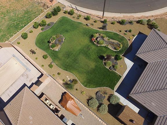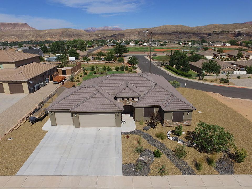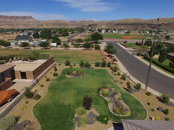 Over 1/2 acre w/ no neighbors behind! Very nice open layout, custom cabinets, gorgeous views of Zion National Park, it sits on over 1/2 acre, fully fenced, RV parking w/full hookups, insulated garage, stainless steel appliances, back splash in the kitchen, tile throughout the great room and all the wet areas, tiled showers, insulated garage w/HVAC,huge covered patio, water feature in the backyard,