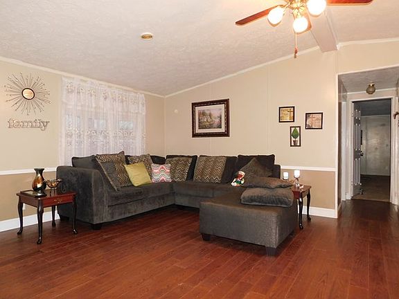 3 bedroom home, each with a full bath. Granite countertops, wood flooring in living and dining areas. Screened in front porch and covered back porch. Perfect layout for 2 families or roommates. Permanent foundation. Crushed asphalt driveway.