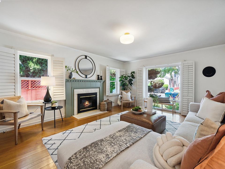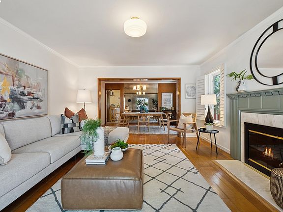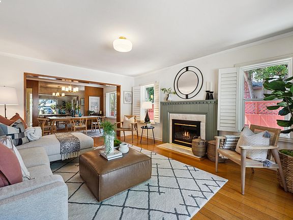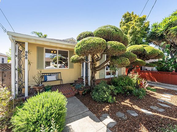 Welcome to your dream home in the coveted East End! Step into this charming single-level bungalow boasting 2 bedrooms, 1 bathroom, and 1156 sq.ft. of vintage living space. Nestled on a generous 3400 sq ft lot, this residence offers the perfect blend of comfort and character. Inside, discover the allure of hardwood floors and captivating period details, including the original and classic green kitchen counter-top tiles and gingerbread trimmed cabinets. The newer stainless steel fridge and dishwasher is a modern touch next to the porcelain white O'Keefe gas oven. Relax by the living room fireplace or unwind in the classic pink-tiled bathroom with a shower over tub. The spacious natural wood dining room is adorned with an extra large wall mirror to enlarge the space with natural light. Enjoy the convenience of a detached garage as a workshop or bonus room, off-street parking, and a backyard in a relaxing garden like setting. Indulge in the quintessential East End lifestyle, with close proximity to top schools, South Shore Shopping Center, restaurants, beach, shoreline trail and convenient to many commuter options incl SF Ferry, BART + more! Don't miss the chance to make this timeless gem your own! Open house 2p-4p, Sat and Sun, June 1, 2.