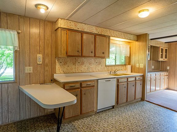 Attn investors or first-time homeowners- 1344sf 3BD 2BA manufactured home w/ snow cover on .75 level, usable acres. Home features a large great room w/ sep family room, galley style kitchen w/ breakfast bar, formal dining w/ built in hutch & M Suite w/ full bath. Nat Gas FA, private septic & 3 Mile Water all on site. Nice open deck w/ att 12x14 storage shed, Det 23x17 Gar, 22x28 carport w/ enclosed workshop, 16x30 carport & 30x56 RV cover. No CCRs or HOA. Several mature fruit trees on site. Just 6 miles from town on County maintained road.