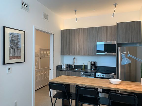 This special place is close to everything. This recently completed building offers a sunlight filled 2-bedroom unit accessed via the lobby and building elevator. The unit features a modernist esthetic with a full complement of stainless-steel appliances, granite and wood counter tops, and plenty of cook and dinnerware for a home cooked meal. Countertop appliances include coffee grinder, coffee maker and toaster. The bathroom has a floating vanity and a shower over a tub. The separate LR-BR features a full sofa bed. The other BR includes a twin over a full bunk. Each bedroom has a desk and wardrobe suitable for clothing and luggage storage. Lighting has been thoughtfully designed to provide plenty of sparkle and romance. The Ramp is located in Salt Lake City's Central Ninth at 900 S and 200 W. Central Ninth is emerging as one of the City's most exciting neighborhoods with many new cafes, restaurants and brew pubs and a rapidly growing housing stock. The 900 S TRAX Station provides excellent carless access to downtown, a mile to the north, and to the University of Utah and its regional medical center. Solitude, Brighton, Snowbird, Alta and Park City resorts are 30-40 minutes by car via the North Temple on ramp to I 15S and I 80E. Local establishments include, Laziz Kitchen (Mediterranean), Scion Cider Bar, Blue Copper Coffee, Water Witch (Wine Bar), Snowmobile Pizza, Vertical Diner (Vegan), The Big O Doughnuts, Juanita (Salvadoran), Tacos Garay, Dough Miner (Bakery), Templin Family Brewing and Kaiser's Barbecue. 5-minute walk to Target and Starbucks, a short drive or uber ride to Walmart and Costco. 1 year lease. Tenants are responsible for all utilities. Some Utilities are encompassed under CAM Charges. No smoking in building.