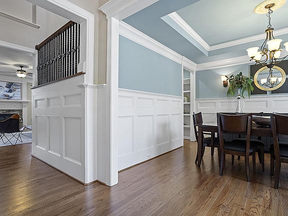 Stunning home in Heritage! Corner lot w/in-ground salt water pool, hardscape, 28 "Green Giant Trees"! 2 story foyer leads to main level w/open floor plan and beautiful hardwoods. 1st floor Owners Suite w/tray ceiling & bay windows w/view of the pool!En-suite bathroom w/dual vanity, soaking tub & tiled walk in shower! Dining room w/decorative wainscoting & tray ceiling perfect for hosting gatherings. Open bright great room features cozy fireplace. Spacious kitchen w/granite counter tops, "New" SS Refrigerator, Breakfast Bar, Breakfast Nook, & Keeping RM w/Wet Bar and built in Beverage Refrigerator, Walk-In Pantry, Laundry RM, Mudroom and Screen Porch w/upgraded windows complete main level. Three secondary bedrooms one En-suite,J&J bathroom bonus+office( or could be 5th bedroom) built in desk complete second level. Media Room( audio+visual equip convey)/Exercise Room w/Private Office , plumbed bathroom, attic storage complete third level.Relax in your private back yard oasis day or night. The pool & retaining wall fea LED lights! Heritage is convenient to the best schools, shopping and dining in Wake Forest! Welcome!