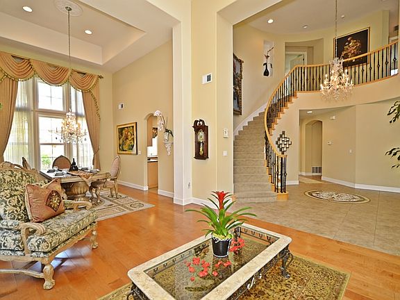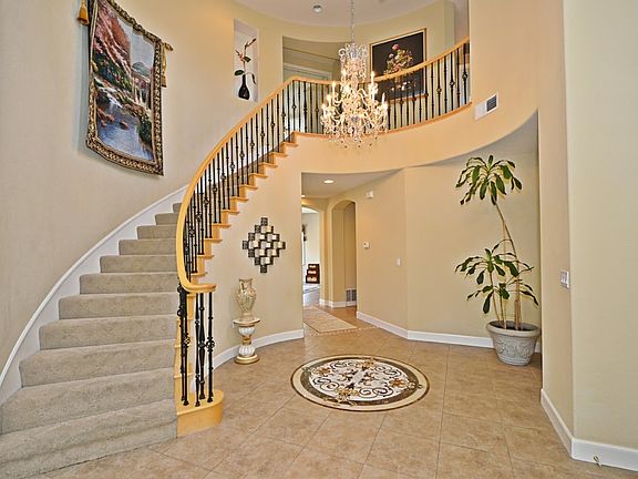 Extraordinarily beautiful home makes a statement with a dramatic foyer entrance including an impressive spiral staircase. The vaulted ceilings create a very spacious feeling affording lots of natural light. New owners will enjoy a full BED/BATH downstairs plus a huge, well designed bonus room upstairs. Avid cooks will love the gourmet kitchen with a brand new steam oven plus a gas range and lots of storage space. Energy efficiency will be yours since the home comes with solar panels. The masterfully designed backyard includes a waterfall, a KOI pond, a gazebo, a covered patio, a lawn area and even a basketball half court. Enjoy living on a very impressive court location with abundant privacy, but still have close access to schools parks and shopping. This is a magnificent must have home!