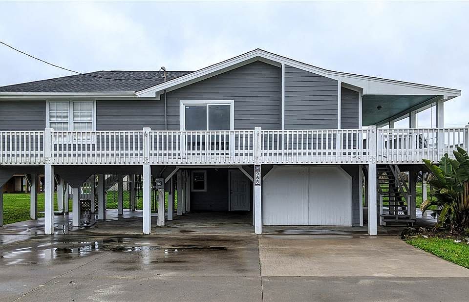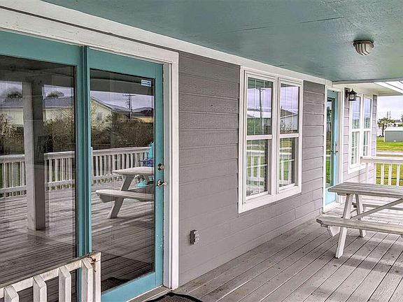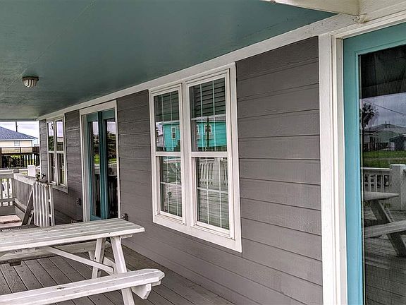 Take a look at this Cozy little 4 bedroom beach home situated on 3 fenced Lots in Emerald Beach Subdivision. Open concept for Living, Dining and Kitchen. Split floor plan with Primary bed and bath separate from other rooms. Features include: Gas Fireplace w/Mantle, Built in Book Shelves, Ship Lap Walls, Sliding doors off the dining area to West deck, All Appliances including W/D. Landscaped yard. Large front deck has two doors- One to the main area and the other to the 3rd bedroom. The back exit door leads from the laundry room with stairs that lead to the Back fenced yard down below (perfect for pets). This home is sold Unfurnished. A- zone transferable Insurance rates. Kind and friendly neighborhood, only 9 miles from the Galveston Ferry. Centrally located to all the Stores, Shops, Restaurants, Bars, and Entertainment. 3-4 Blocks from the beach. A nice stroll or golf cart ride to the beach.