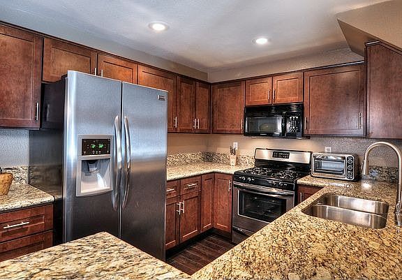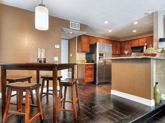 Amazing Arrow Park Home! Shows like a model. End unit, great location within the community. Nicely upgraded with custom features and touches throughout. Spacious kitchen with granite counters and backsplash, beautiful cabinetry, built-in microwave, dishwasher, recessed lighting, and stainless steel sink and faucet. The second floor features 2 well appointed master suites with connecting bathrooms. Rich wood flooring, custom baseboards, plush carpeting, and warm colors accent this wonderful home. Gas fireplace with custom tile/granite mantle and hearth, central air and heat, and ceiling fans. Upgraded dual pane windows, 6 panel doors, mirrored wardrobe, and bathroom fixtures. Large downstairs patio and upstairs balcony, perfect for entertaining. Fully finished 2 car attached garage with direct access, automatic opener, roll-up door and workbench. Association pool and 2 spas, surround by lush greenbelts and trees. A perfect place to call home.