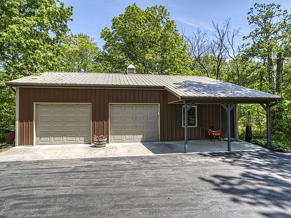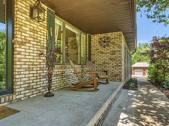 BEAUTIFUL BRICK HILLSIDE RANCH WITH A WALKOUT BASEMENT tucked away from the road on a serene WOODED 5 ACRE PARCEL. This gorgeous home with an additional detached garage and workshop along with freshly mulched and groomed walking trails is what you've been searching for!! Inside you will find hardwood floors, an updated kitchen, a spacious formal living room as well as a 24 x 24 great room with a view of the landscaped and fenced back yard. Looking for storage?? This home has an incredible sized stand up crawl space with TONS of room and shelving galore!!! Fully finished basement with an additional bedroom (no egress window), office and a large gathering space for entertaining and making memories!!!Don't want to run upstairs for drinks? This lower level has a wet bar/coffee bar as well as a brick fireplace for relaxing. Step out onto the freshly revamped patio for a fire or make use of the main level wrap around porch!!! This home speaks for itself! Book your showing today!!!
