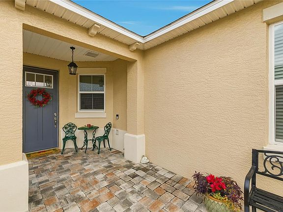 Looking for a TRUE retirement home that also provides maintenance free living look no further you found it. As you arrive at the property you will notice the landscaping that boasts of concrete curbing and a beautiful stone paver driveway and walkway leading to the front door. As you walk inside to the open and spacious floor plan with light tile flooring throughout and crown molding in main living areas with ceiling fans in all rooms. The home also offers a split bedrooms allowing privacy for both you and your guests. The Master Suite has a large walk-in closet with a master ensuite with dual vanities, a tiled shower with a bench and water closet. The open spacious living/dining area that leads you directly to your beautiful kitchen with all stainless steel appliances and light cabinets with granite counters and a neutral backsplash. Two car garage with windows and epoxy floors providing a bright and dust free space for storage, golf carts and your car. The home also boasts of a spacious screened Lanai with Sun shades and a ceiling fan with a knee wall allows you the option to easily enclose this patio for additional square footage if desired. Considering that you already have a large concrete patio outside for any BBQ's or get togethers with friends and neighbors or just relaxing soaking up the florida sunshine. Dont let this home slip you by call today for your private tour.