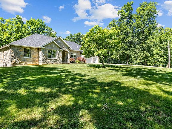 Exquisite and Custom stone 3 bed 4 bath home on almost 12 acres in Sainte Genevieve hill farm country! Surrounded by some of the most beautiful terrain and farms in the area, this custom home was built as a forever residence and the quality and craftsmanship show! Main level master suite, Open floor plan and finished custom basement. Home has a large patio overlooking the wooded and private acreage. Serviced by a geothermal HVAC, home has 9'+ tall basement walls, a bar located in the walkout basement, plenty of space for the family and entertaining and is CUSTOM stone sided front to back. Large oversized garage and ample parking. This ONE of a kind home is close to Farmington and Sainte Genevieve and ready for you!