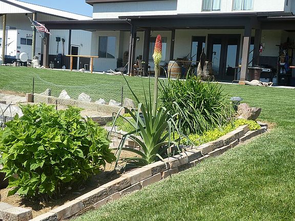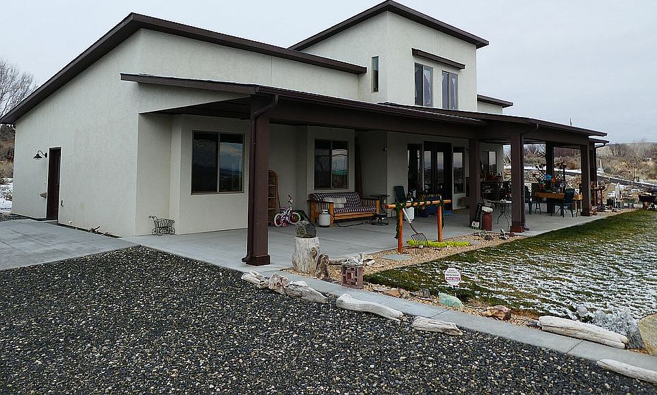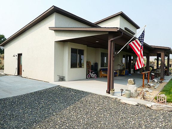 Custom stucco home on 3.25 acres. Beautiful view with large veranda. Very private and no covenants. Very large detached garage and RV hookup. 2000 square feet on ground level with 250 square foot loft. Ground level entry. Has its own well and solar panels. Large lawn with in ground watering system.