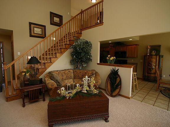 Lofted ranch in Pinestone. Charming home with a double cathedral ceiling in the great room, corner gas fireplace, & trapezoid windows. Vistaview kitchen overlooks the great room and nook. Custom cabinets in the kitchen, same height breakfast bar, & bay window in the nook. Loft overlooks the vaulted nook & the great room. Stained trim, 6-panel doors, seperate utility room, pull-down attic stairs, 5' vanity in master bath. Energy Star certified builder. 90+% hybrid dual duel Trane furnace.