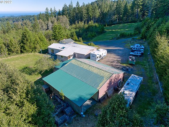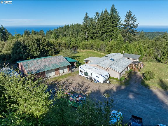 Beautiful Country Property w/ocean views & a private setting. Meadows & terraces surrounded by Doug Fir trees. The open & spacious floor plan in the kitchen & living area has lots of windows,vaulted ceilings to let the outside beauty in. The primary suite has a recently remodeled bathroom. There is a 1200 sf pole building to house you boats,rv's,toys &/or hobbies. Room for gardening and/or animals. There are also 3 complete RV connections for long term storage. Watch both virtual & drone tours.