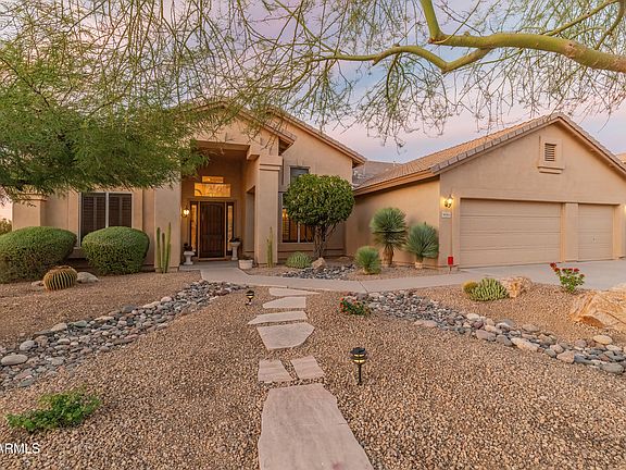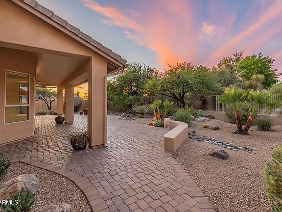 Wonderful opportunity to live in the highly desirable, picturesque & serene Troon North community. This single level 3 bed, 2 bath, 3 car garage home sits on a premium N/S lot with desert behind. It offers a spacious & split floor plan and an abundance of natural light. The great room features high vaulted ceilings, a formal dining area & wood burning fireplace. The eat-in kitchen boasts an oversized island w/ breakfast bar, granite counters and plenty of cabinet space. The large split primary suite offers private patio access and a stunning bathroom w dual sinks, separate soaking tub, private toilet room, and a walk-in closet. This beautiful home has 2 additional split bedrooms & 2nd full bathroom, laundry room w sink & storage plus a newer roof & 2 newer HVAC units (all less than 5 years old). The private, peaceful and low maintenance backyard includes an extended covered & uncovered patio and gorgeous desert views. Great space to relax and enjoy the outdoors.