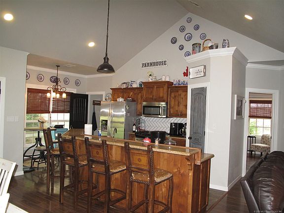 Beautifully built!! 4bd/2ba home down private road with a 4th bedroom attached garage conversion. Master bedroom with private bath, 2-closets, standing shower. Corian countertops, beautiful entry-way, landscaping and sidewalk. 30x30 Pull thru large shop/barn on property as well! All this on 1.5 acres m/l. Within approximately 3 miles to the Lake Tenkiller State Park. Very well maintained. All Kitchen appliances remain. Fenced all three sides; just need fence across front. Close to Convenience store.