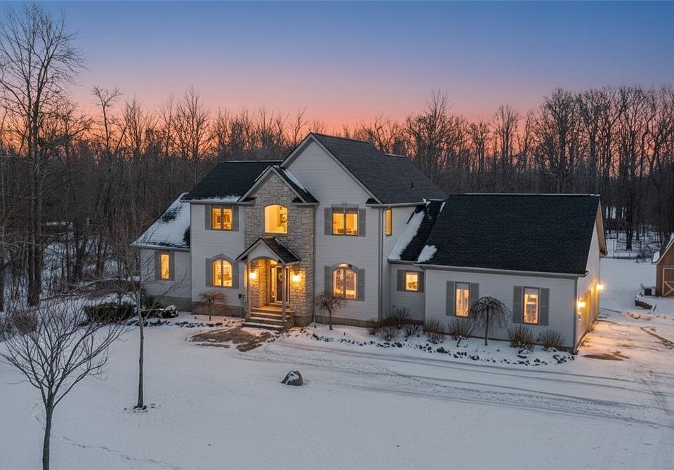 The 1st floor is completed by a dedicated office or sitting room, half bath, mudroom, and laundry room, providing functionality without sacrificing style. Upstairs, you’ll find 3 generously sized bedrooms. Two share a Jack-and-Jill bathroom, while the third enjoys its own ensuite bath, creating a true second-floor suite. The walk-out LL expands the home’s living space with a built-in bar, a large recreation or family room, double-sided gas fireplace, full bathroom, and direct access to the backyard. Outside, the property is enhanced by a detached outbuilding equipped with gas and electric, offering endless possibilities for a workshop, hobby space, or additional storage. An expansive 3 car attached garage completes the home. A rare opportunity offering space, privacy, and versatility in a beautiful Chardon setting. Don't miss out on the chance to call this property home!