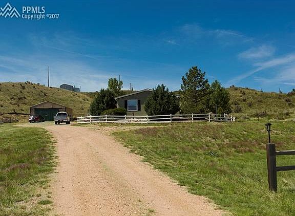 Imagine relaxing on your back patio with unobstructed views of the mountains and Pikes Peak as you enjoy your rural life away from the city's hustle and bustle. With your 5 acres, you have plenty of room to stretch and relax without disturbing any neighbors (or being disturbed by them). This four bedroom house is ready for you to move in... this is NOT a "sweat equity" property, or something that you need to "see the value" that might be there. It is an amazing residence ready to call home. Located on county maintained roads, the property includes a covered 10'x24' concrete patio in the front of the house and another 10'x20' concrete patio in the back with views of the mountains and Pikes Peak. Two-car detached garage is an extra large 24'x24' structure with built-in shelving. New tankless water heater and softener installed in 2021. Dishwasher installed in 2018. Newer water fixtures and plumbing, runs off of city water not well water. Well established landscaping and wind breaks. Some furniture and landscaping equipment can be negotiable.
